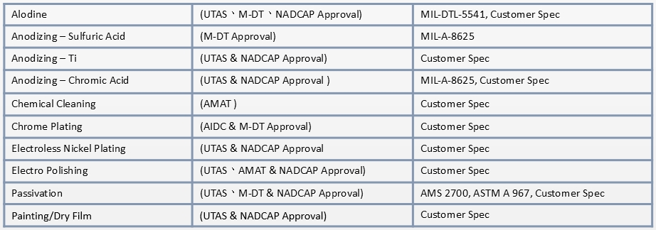 Gongin has been providing surface treatment services for aerospace customers and semiconductor customers for a long time. We have more than 20 kinds of materials and processes to choose from. At the same time, we have Nadcap certification and supplier certification of world-class manufacturers in the industry. The quality is trustworthy.